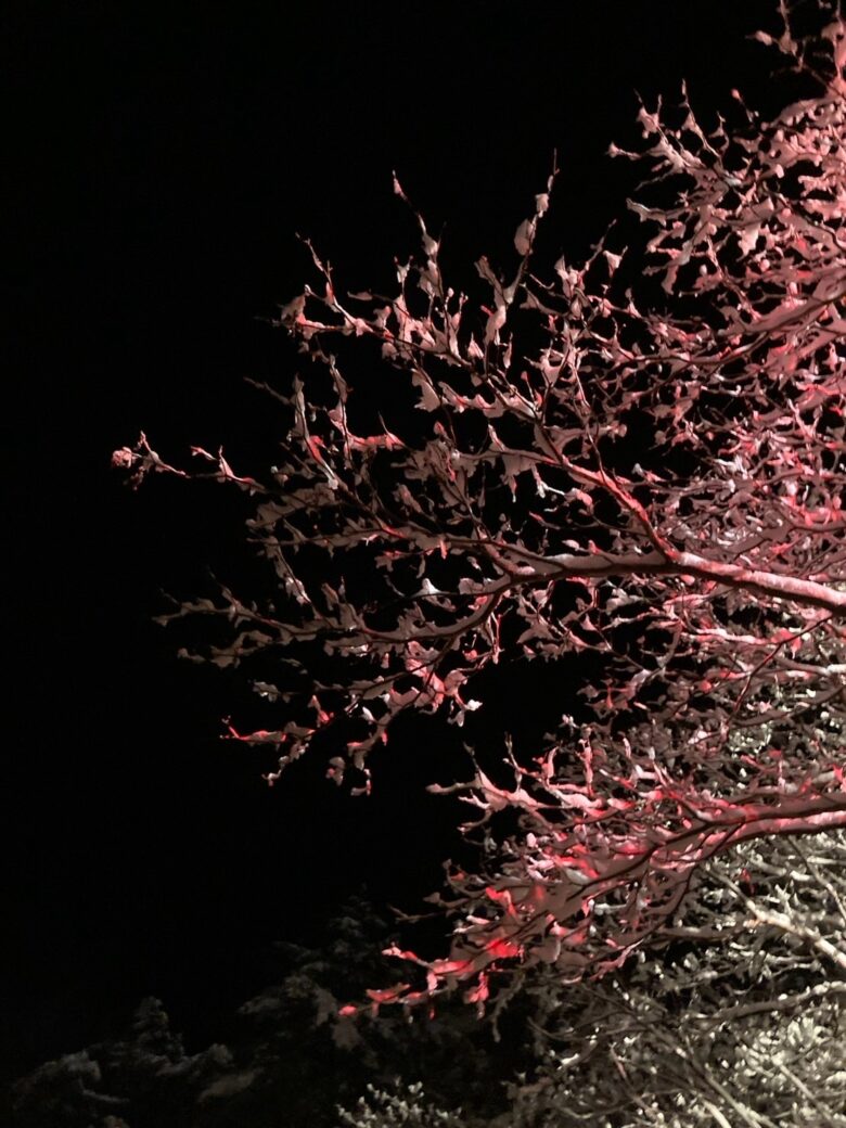 さらに、枝に積もった雪にピンクのライトが当たると、まるで満開の桜のような雰囲気に♪