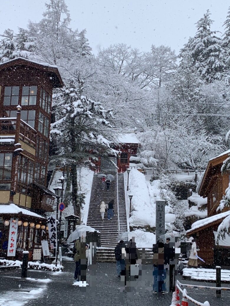 雪の積もった温泉街には想像を超える絶景と、想定外のハプニングが待っていました(笑)。