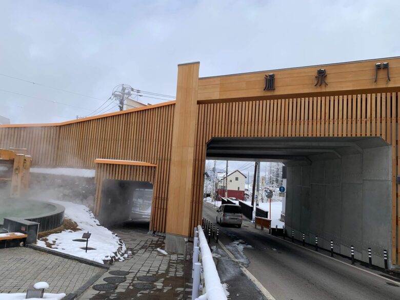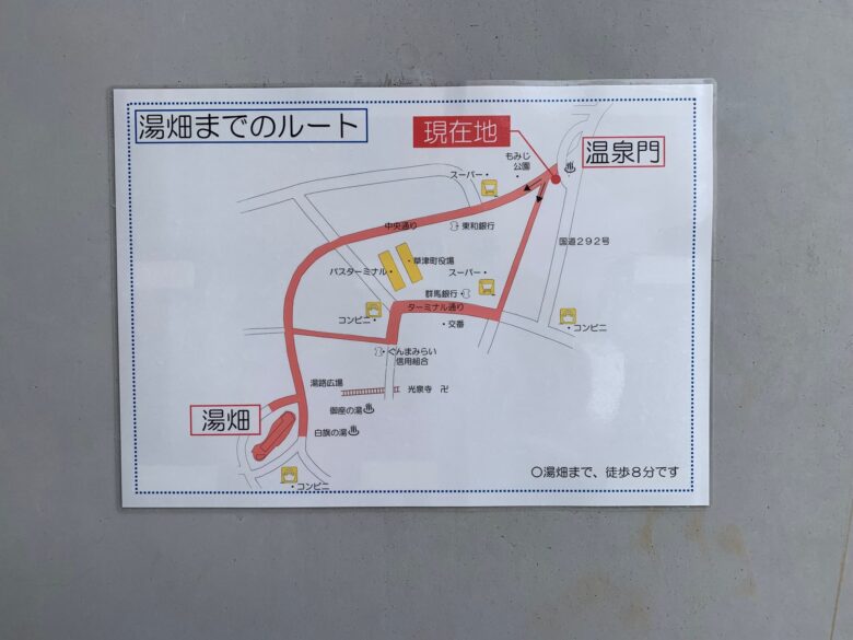 温泉門への行き方は、湯畑からバスターミナルの横を通ってちょっと歩けば到着です。